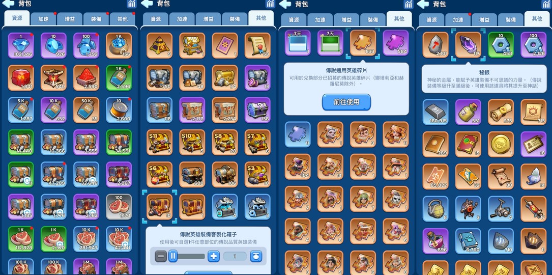 英雄裝備箱、秘銀、專精石都留不少,可參考圖片