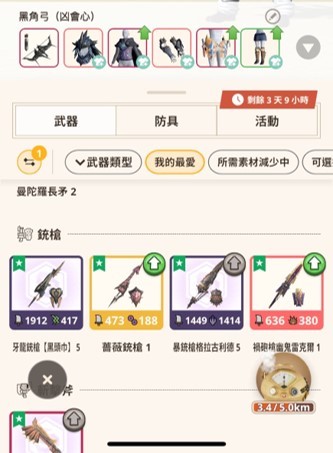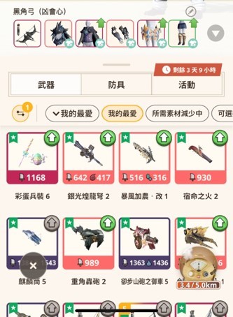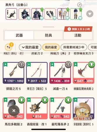 其他武器不依依敘述,相對及古龍防具,相關防具均有練