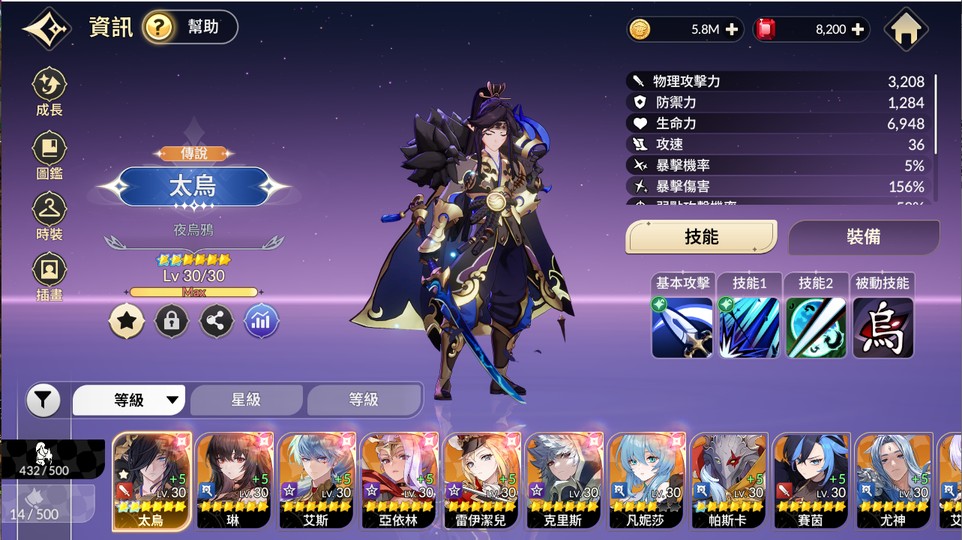 【48等】太烏2突 帕斯卡1突琳 亞依林 艾絲芭塔 戴乙姬 克里斯多傳說角雙傳說寵六星烏鴉