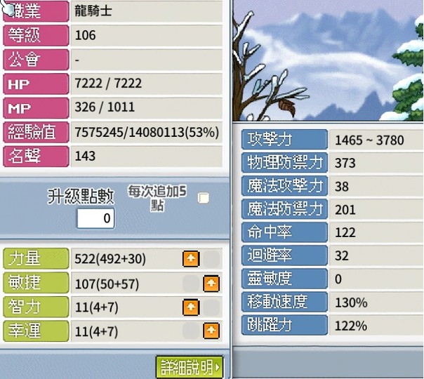 技能洗過了(一轉魔天點6劍氣點1 其他滿,二轉終極不點 快速之矛11 其他滿)