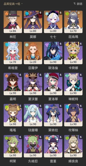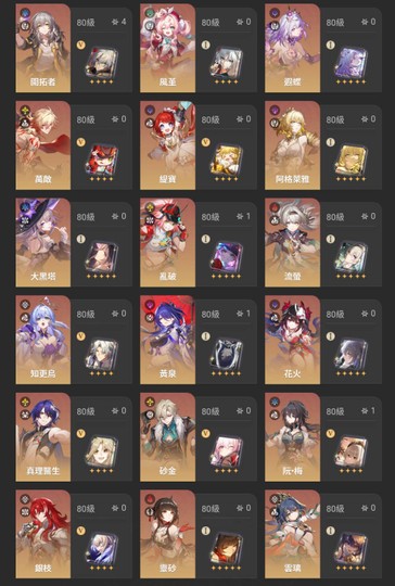 以上數量皆不含命座突破