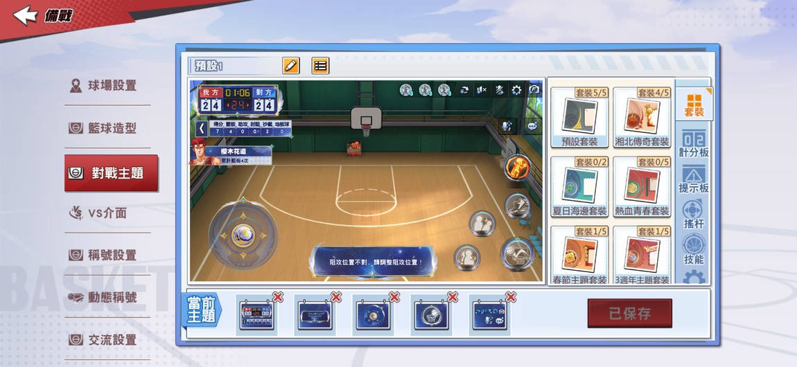 對戰主題:湘北傳奇套X4 春節X1 至尊球場套X5