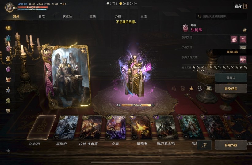 變身:1粉,法利昂lv9,技能巨神狂暴