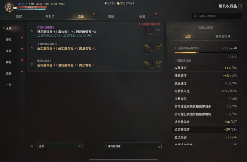 +8燦爛的神射T恤、+7燦爛的地龍面甲、+7燦爛的敏捷肩甲、+6光龍面甲、+1變戒、+2祝福燦爛敏捷