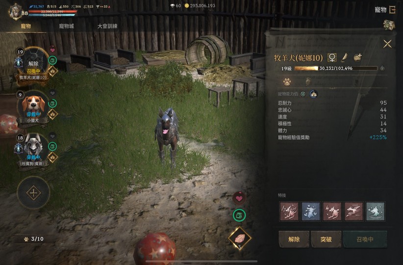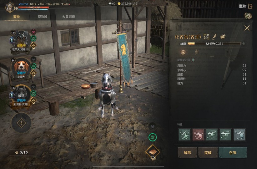 寵物:Lv19牧羊、Lv18度賓,數值都不錯(附圖)