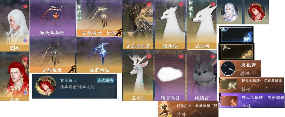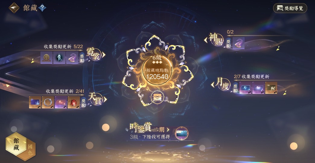 天賞:淵冰、熹羽、雷武、玉京仙、玄鹿垂星駕、銀漢渺、流光溯(共15顆)
