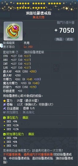 【頂級培羅德戒指】雙傳25星33%敏頂戒 附加86+18敏2.5排 白5全b~