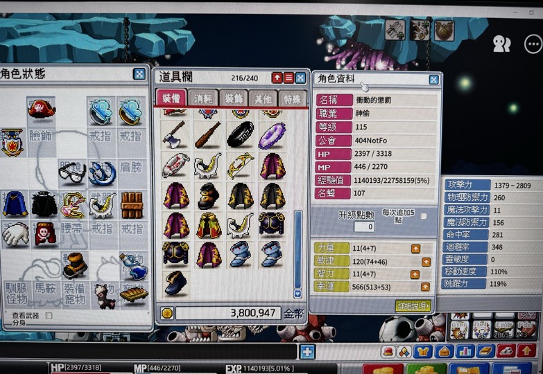 【115等、神偷_暗影神偷】出售 115等神偷 表功2809 有寵物 有眼鏡 護身符6個
