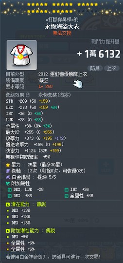 【永恆海盜大衣】雙傳25星39%敏永恆海盜大衣 附加966敏 白5全救世均13.2~