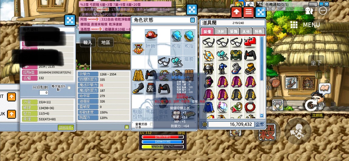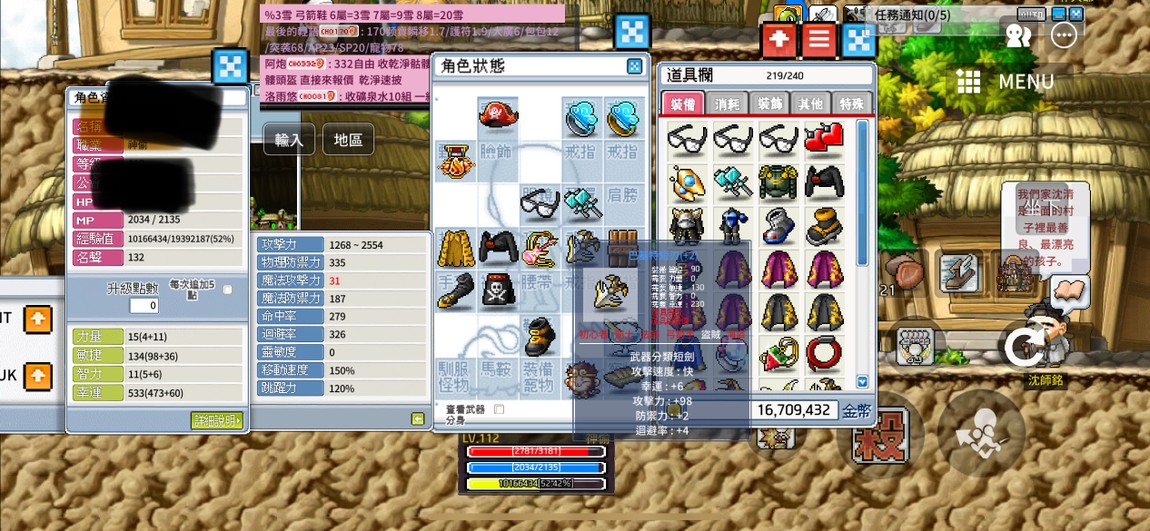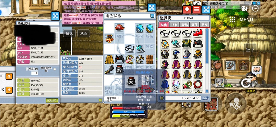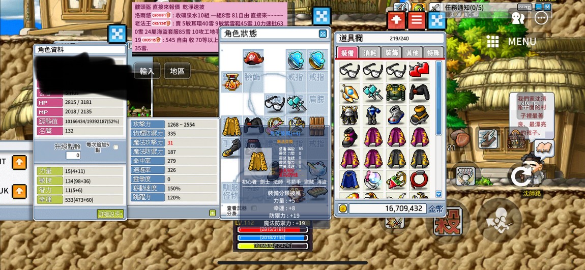 包包不清 有移動石頭5 護身符5 楓幣1500萬左右