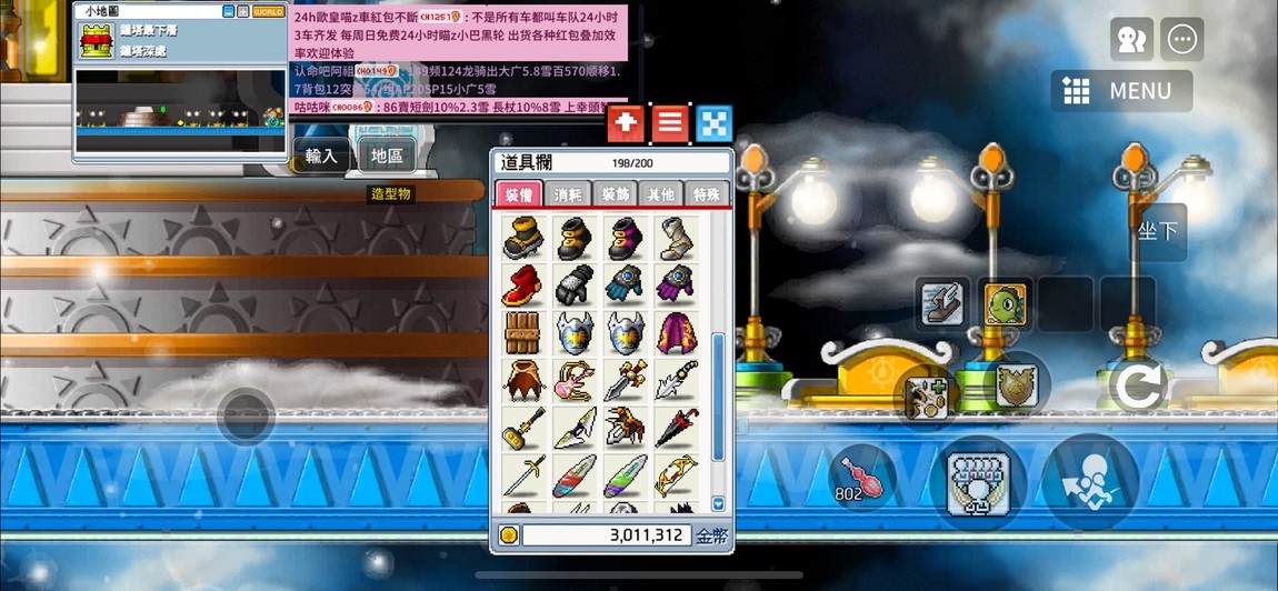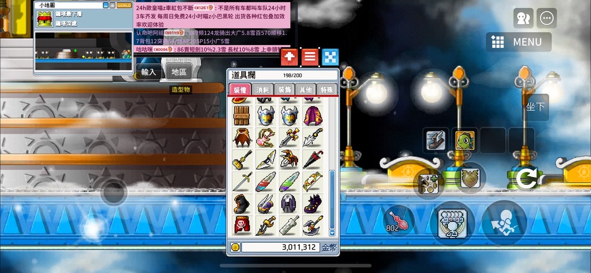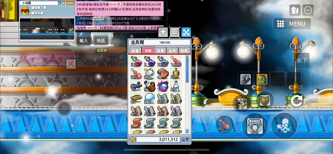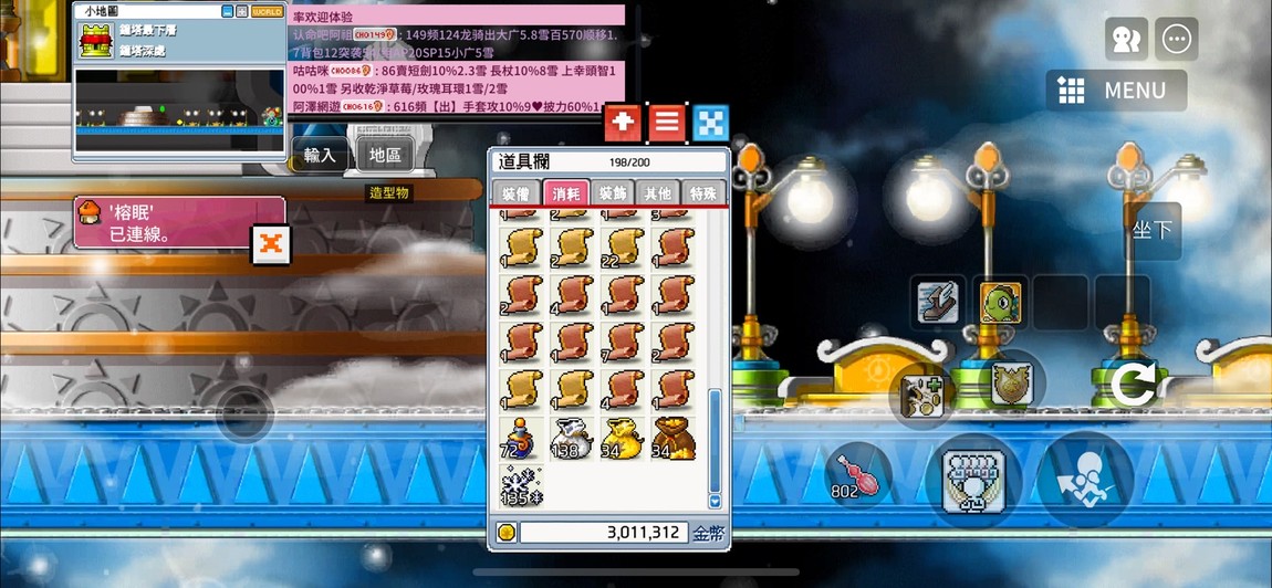•楓幣300w(錢袋銀色138個、金色錢袋34個、沈重錢袋34個)剩餘135❄️