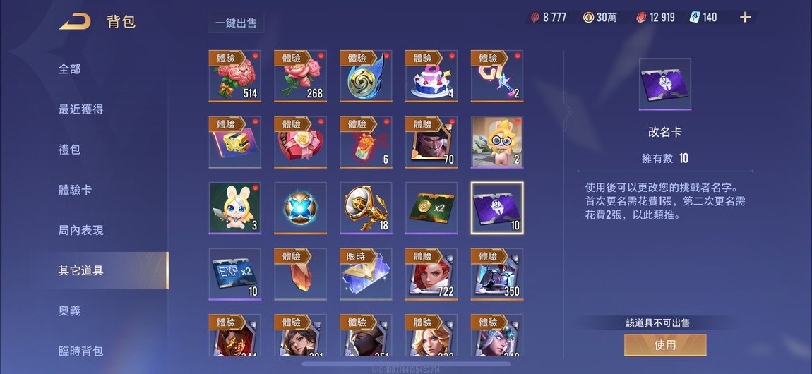 內有30萬金幣 10張改名卡 傳說水晶*1