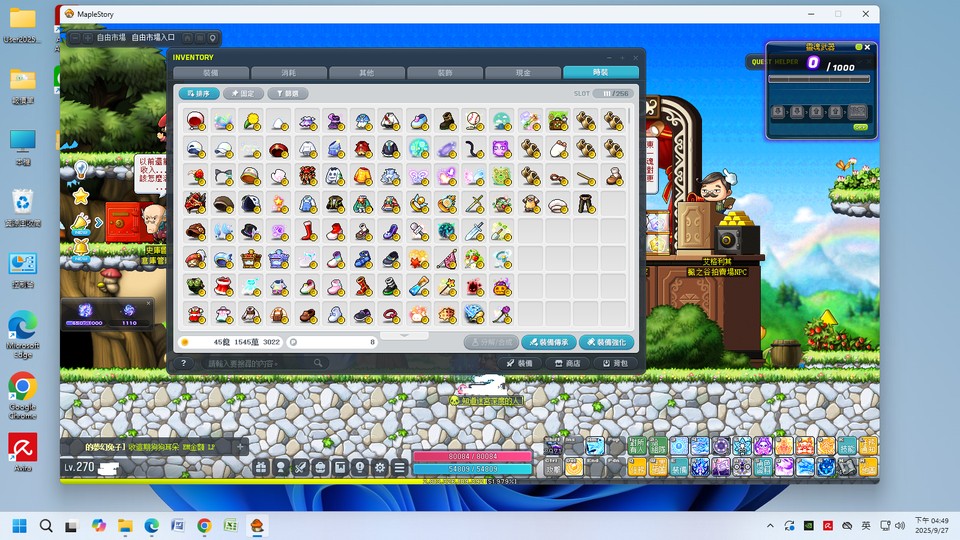 裝備有幾個都是傳說淺能、帳號內還有45億楓幣