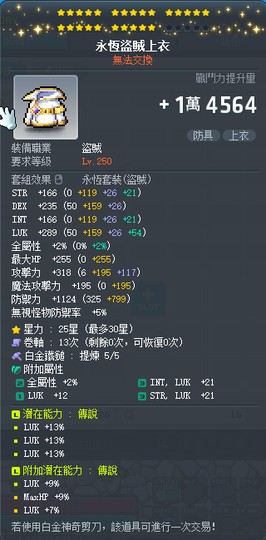 【永恆盜賊上衣】雙傳25星39%幸永恆盜賊上衣 附加97幸大雙 白5全b~
