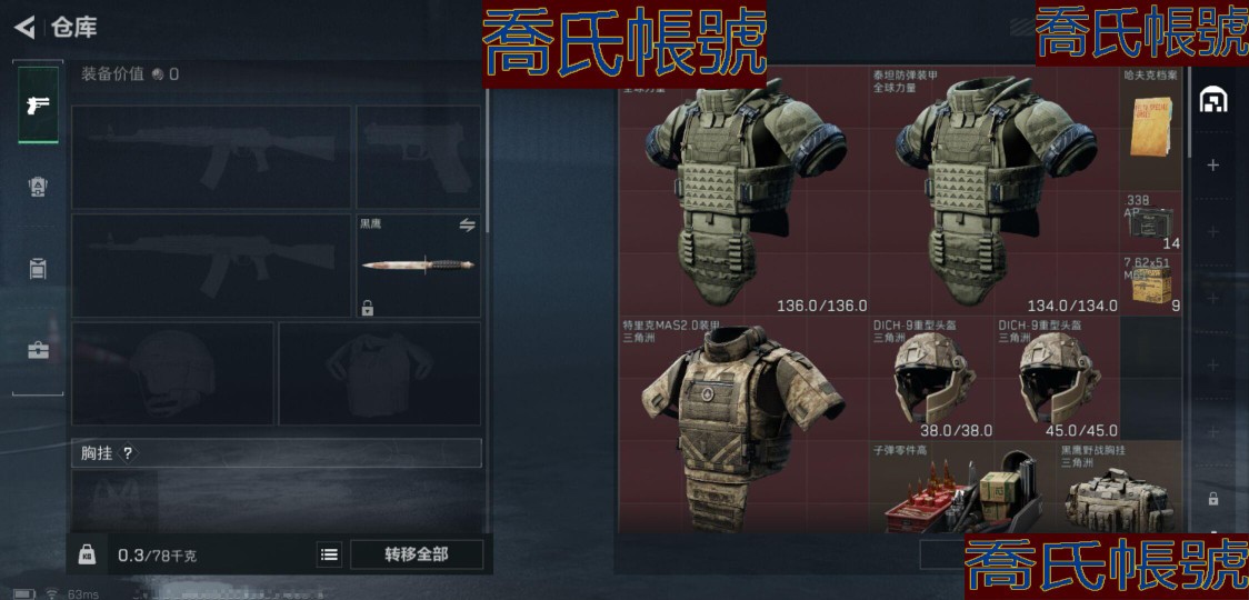 【OBSQRQE383142】總資產:35.9M,哈夫幣:1408W,武器皮膚120,烽火60級:鑽石,戰場11級:無段位,通行證8級:通行證免費版 【安全箱】進階安全箱;【特勤處等級】倉庫LV.6,指揮中心LV.5,訓練中心LV.6,靶場LV.4,潛水中心LV.1,收藏室LV.0;【幹員皮膚2】:駭爪維什戴爾,威龍壯志凌雲;【已有捆綁包1】:維什戴爾捆綁包;【近戰皮膚】:近戰武器-黑鷹;【步槍皮膚】:M4A1突擊步槍-阿米婭,SCAR-H戰鬥步槍-啟航,SCAR-H戰鬥步槍-鐵藝蒼穹,ASVal突擊步槍-蛇年祥瑞,騰龍突擊步槍-獵鱷行動,SCAR-H戰鬥步槍-囚徒,M16A4突擊步槍-競賽選手,AKM突擊步槍-林中獵手,AUG突擊步槍-蛇,M4A1突擊步槍-特勤執行,PTR-32突擊步槍-ACE,AUG突擊步槍-特勤執行,QBZ95-1突擊步槍-ACE,AUG突擊步槍-戰術迷彩,G3戰鬥步槍-戰場英傑,騰龍突擊步槍-冰天雪地,AKS-74U突擊步槍-冰,SCAR-H戰鬥步槍-榮耀列隊,M7戰鬥步槍-搗蛋鬼,QBZ95-1突擊步槍-公平競技,ASh-12戰鬥步槍-哈夫克科技,K416突擊步槍-星之彩,M4A1突擊步槍-蜂窩科技,ASVal突擊步槍-黑巧甜心,M16A4突擊步槍-高雅黑,M7戰鬥步槍-黑巧甜心,PTR-32突擊步槍-黃蜂,QBZ95-1突擊步槍-海色,M4A1突擊步槍-海色,M4A1突擊步槍-高雅黑,AKM突擊步槍-淘金者,騰龍突擊步槍-三角洲力量,SG552突擊步槍-精鋼,M4A1突擊步槍-粉色塗裝,QBZ95-1突擊步槍-高雅黑,G3戰鬥步槍-高雅黑,K416突擊步槍-高雅黑,K416突擊步槍-幾何迷彩,AK-12突擊步槍-冰川,M4A1突擊步槍-蛛網,SG552突擊步槍-海浪,SCAR-H戰鬥步槍-數碼迷彩,QBZ95-1突擊步槍-海浪,M16A4突擊步槍-濺射,AUG突擊步槍-淺藍塗裝,M7戰鬥步槍-紅色塗裝;【衝鋒槍皮膚】:Vector衝鋒槍-能天使-午夜郵差,勇士衝鋒槍-能天使-午夜郵差,MP5衝鋒槍-戰術競備,勇士衝鋒槍-工業狂潮,P90衝鋒槍-緊急戒備,勇士衝鋒槍-深海恐懼,Vector衝鋒槍-紅色彗星,SR-3M緊湊突擊步槍-英雄;【射手步槍皮膚】:M14射手步槍-電鋸驚魂,SR-25射手步槍-水墨雲圖,SVD狙擊步槍-暗夜獵手,SKS射手步槍-ACE;【狙擊步槍皮膚】:R93狙擊步槍-維什戴爾,M700狙擊步槍-競技風,M700狙擊步槍-蝮蛇;【霰彈槍皮膚】:M1014霰彈槍-林中獵手;【輕機槍皮膚】:PKM通用機槍-蝮蛇;【手槍皮膚】:沙漠之鷹-曙光,QSZ92G-風林火山,93R-博士;【掛飾4】:毀滅之源,掛飾-維什戴爾,掛飾-啟程,掛飾-王牌座駕;【載具12】:M1A4坦克-夜間迷彩,M1A4坦克-護林人,步戰車-生命線,突擊車-冷鋼,突擊車-沙漠迷彩,防空車-酒紅,防空車-獵虎,防空車-生命線,輪式突擊炮-榮耀,輪式突擊炮-護林人,突擊直升機-黃蜂,突擊直升機-原始偽裝;【貨幣】56三角幣,0曼德爾幣,50三角券(典藏皮膚顏色請以典藏展示為準,安全箱等時效性道具請以遊戲內資料為準)【QQ登入】老號需四天換幫