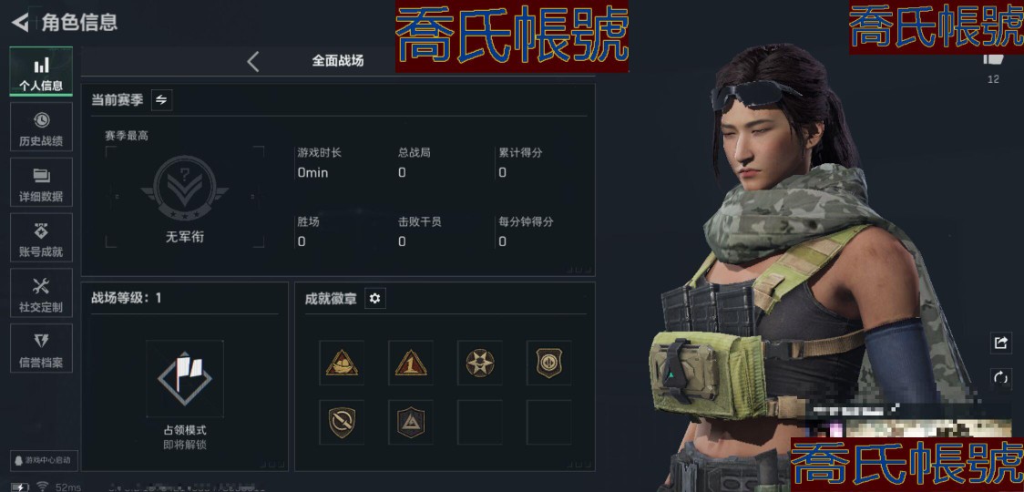 【11等】總資產:65.4M,哈夫幣:23W,武器皮膚85,烽火44級:鉑金,戰場1級: