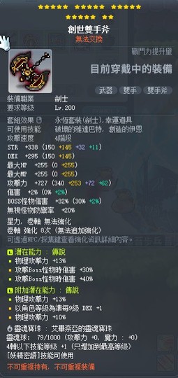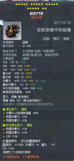 一套無限交易200掉寶裝+滿楓滿掉寶裝(在影武身上)