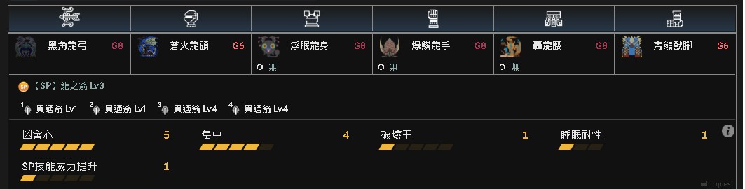 目前裝備(如圖):滅盡龍頭+岩龍身+青熊手+爆鱗腰+天狗腳