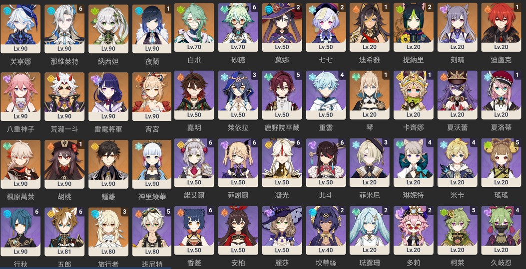 【女、60等、19金角、8金武】退坑 滿命 水龍王 那維6+3 夜蘭 胡桃1+1 草神 一斗 心海專
