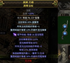【法杖、雙孔混沌+5】雙孔 凋零法杖 法+混傷203% 混法+5 施放速度27%