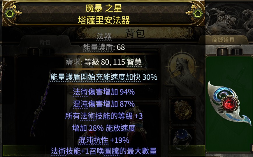 【法器、混沌圖騰】畢業法器 法+混傷181% 圖騰+1 法術+3 施放速度28%