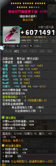 神秘冥界幽靈雙手劍 70%BOSS 10%物功 主流主潛能