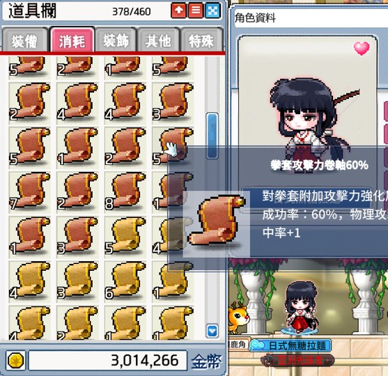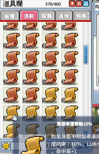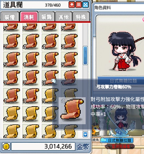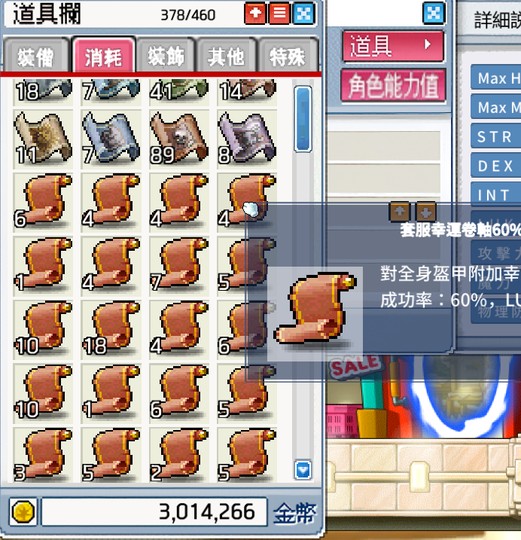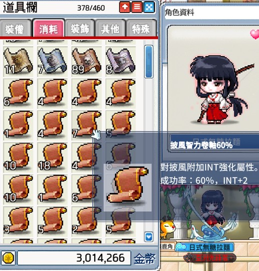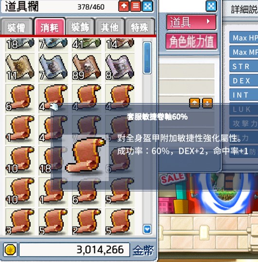 包內有雪花*556+許多有價卷軸和裝備,帳號內還剩300世界幣