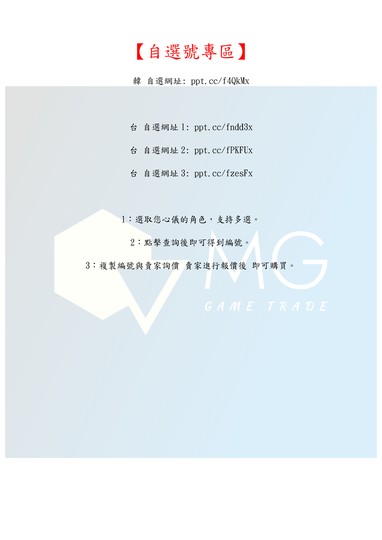 1.此為虚擬商品,不支持七天鑑賞期,介意勿購。 2.移交如有問題請勿更動帳號及綁定,請先聯繫賣家。 3.確認帳號無誤後,請依遊戲綁定方式更改密碼及綁定。 4.為避免交易糾紛,下單前請確認商品內容是否變更,未標示資源為隨機。 5.購買後14天內封號可保固退換 (發貨後開始計算時間), 14天後依封號原因判定,購買即視為同意此協議! 韓 自選網址: ppt.cc/f4QkMx 台 自選網址1: ppt.cc/fndd3x 台 自選網址2: ppt.cc/fPKFUx 台 自選網址3: ppt.cc/fzesFx