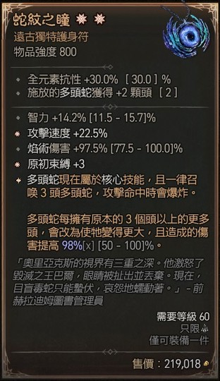 雙太古攻速、原初 近頂特效 蛇紋之瞳項鍊