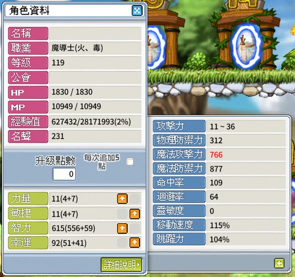 (等級已120)目前AP771,幸運塞得剛剛好92,1點都沒浪費。