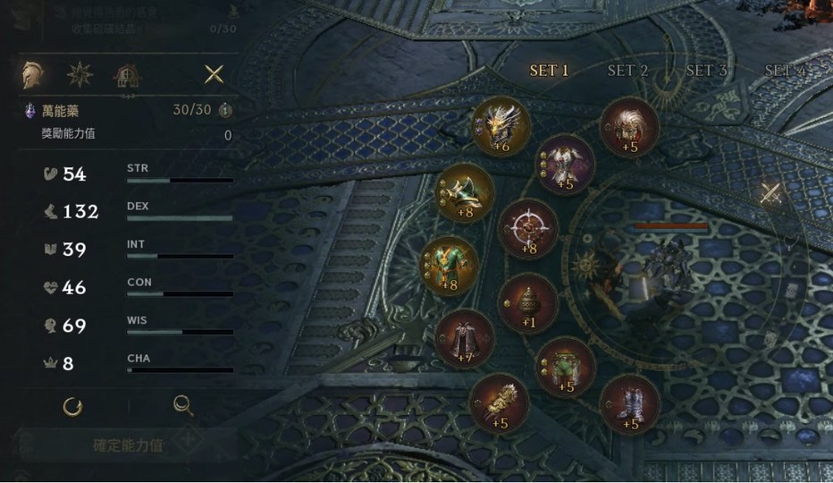 除祝福世界樹盔甲為紫裝,其餘皆紅裝,武器為進化武器