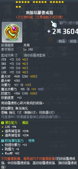 道具掉落率40%+9%幸 頂級培羅德戒指
