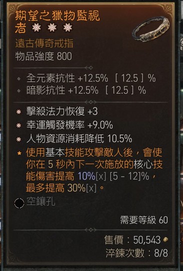S10法師戒指 3太古 法力恢復+幸運+資源降低