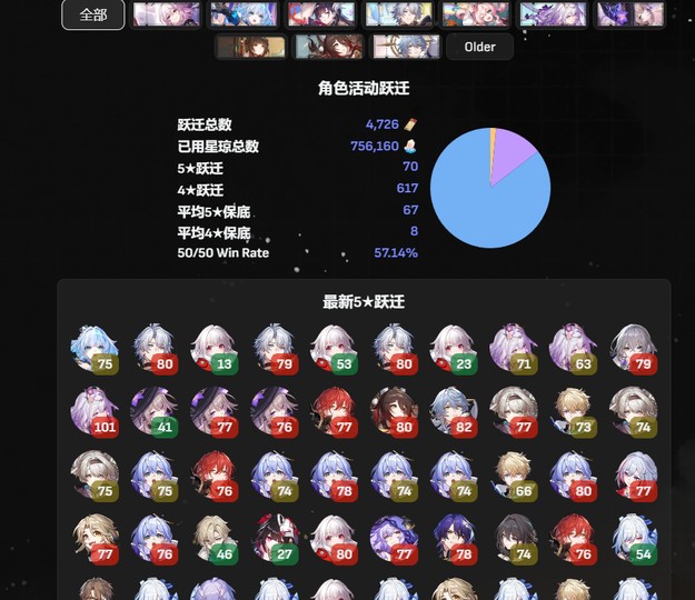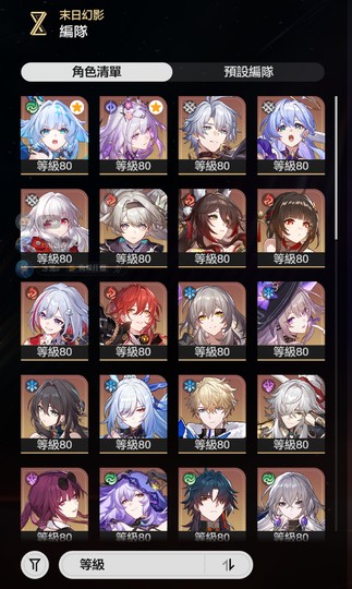 【女、70等、32金角、26金專】6+1(希兒 鏡流 知更鳥) 多5星 流螢2命大黑塔2命 霞碟2命白厄2命