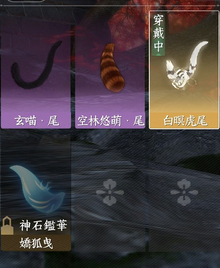 15天賞(1未用 / 黑鹿車 / 自染喵語 / 自染陸離 / 天賞頭*2 / 火武 / 白虎尾)