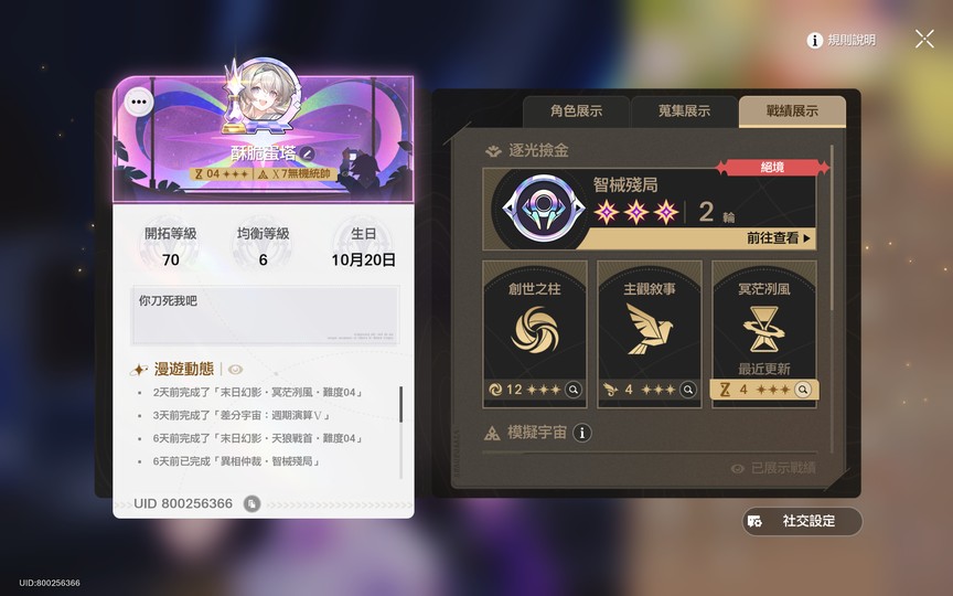 忘卻之庭/虛構敘事/末日幻影每期100T 三項全包250(能滿星盡量滿星 會凹點)