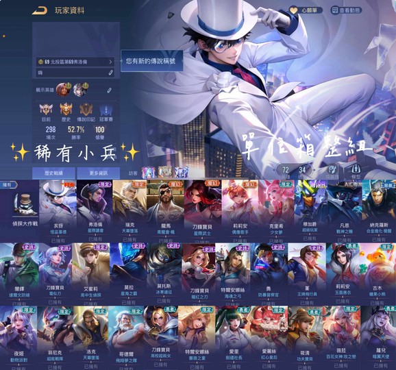 【G帳手機未綁信箱可改、星耀、V5、72英、34造】多英雄/基德全套/星際洛倫/稀有小兵/天幕墜落/偶像歌手/超級玩家/合金進化覺醒