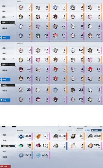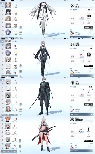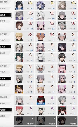 ◎此帳僅有綁FB,google及信箱未綁。 購買後移交FB帳號(FB登入在IOS、安卓都可遊玩),或可幫綁google或信箱(需可收信),擇一。\n ◎一手帳號,優質安全!\n\n (12/21文字更新) 【角色+輔助機】 ◆(雷/黯衍)3S麗芙霽夢+專武+專屬輔助機·浮浮\n◆(暗/熠光)3S比安卡暉暮+專武+專屬輔助機·濁璃\n◆(物理/覆冰)3S賽琳娜希聲+專武+專屬輔助機·雪歌\n◆(物理/覆冰)3S亞里莎回音+專武\n◆(暗/電束)2S3莉莉絲謬影+專武+專屬輔助機·彼莉\n◆(暗)S露娜銀冕+專武\n◆(物理/真意斬)S比安卡深痕\n◆(火)S渡邊塵銘\n◆(雷)S深紅囚影\n◆(雷)S森息\n◆(冰/覆冰)S明晰夢50碎片+(冰)S萬華50碎片(皆未合成) ◆輔助機:A冷觀+A沃托+A元謁+A伶崖 【票券】\n◆黑卡:494\n◆活動角色研發券:\n(降臨狙擊池0/60) ◆基準角色研發券:35870 (基準角色池15/60,基準自選檢定未使用,可再得至少2隻S角)\n◆狙擊武器研發券: (狙擊武器池0/30)\n◆基準武器研發券:3200\n 【遊戲進度】\n◆主線關卡5-7、隱藏關卡3-6、意識營救戰通關、法奧斯評級部分通關、神寂啟示錄部分進度 ◆遊戲內容大部分未通 【自選箱&武器共鳴】 ◆新手S角色自選箱X1 ◆A角自選箱X2 ◆6星武器自選箱X1(至終焉) ◆5星武器自選箱X4、自選5星武器碎片x870\n◆6星武器共鳴器X1(可用於6星專武共鳴)\n 【塗裝】 ◆終焉特效皮膚:塗鴉法則 ◆萬華特效皮膚:濱海漣漪 ◆覓語塗裝:泳歌盈步\n 【貨幣&道具】\n◆囚籠幣:\n◆戰區幣:16435\n◆指揮局積點:19874\n◆遣測商店:28435\n◆6星意識自選共鳴:21\n◆角色塗裝設計圖:28\n◆武器塗裝設計圖:120\n◆宿舍幣:89\n◆貿易憑據:15619