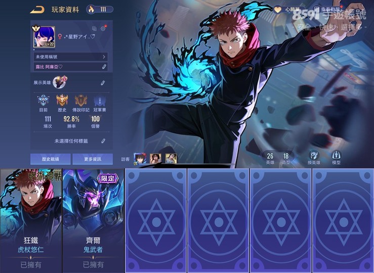【G帳無綁無連、戰場傳說、V1、26英、18造】虎杖、紫標齊爾簡帳 可議價