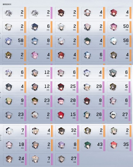 【角色+輔助機】\n◆(暗/熠光)SSS+ 比安卡暉暮+專武+專屬輔助機·濁璃\n◆(暗/電束)SS3莉莉絲謬影+專武+專屬輔助機·彼莉\n◆(火)S渡邊塵銘+專武\n◆(冰)S曲啟明\n◆(物理/真意斬)S比安卡深痕\n◆(火)S遙星之座\n◆(雷)S深紅囚影\n◆(雷)S森息\n◆(物理/覆冰)S亞里莎回音50碎片+(冰/覆冰)S明晰夢50碎片+(冰)S萬華50碎片(皆未合成)