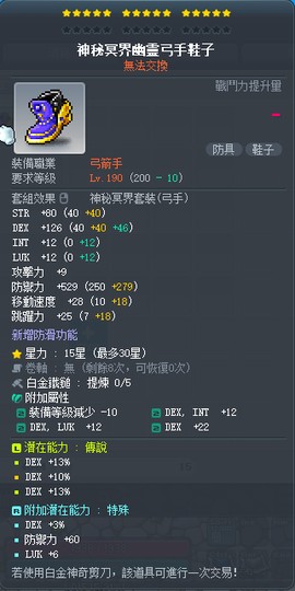【神秘冥界幽靈弓手鞋子】15星36%敏神秘弓手鞋~