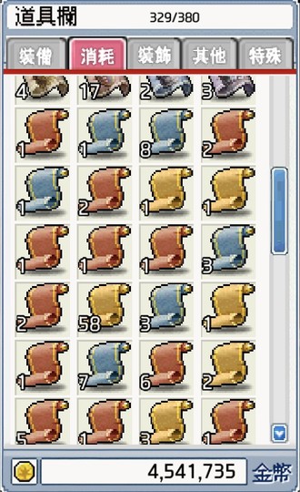 背包全部不清 有眼鏡跟之前打過女神的羽毛 些許高屬裝 武器跟一堆卷軸