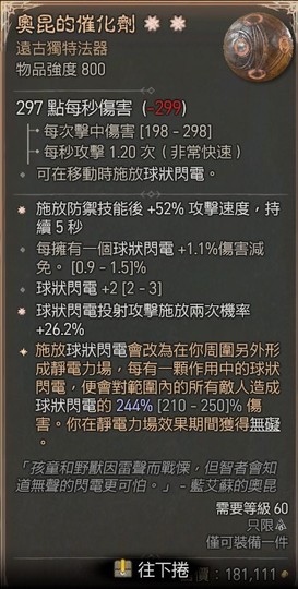 2太古 二太古 奧昆的催化劑 +4球狀閃電 攻速52% 特效244%
