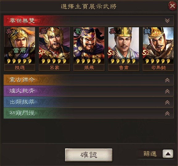 動態解鎖:sp袁紹、sp郭嘉、sp關羽、張飛、周泰、賈詡、陸遜、周瑜、左慈、呂布、司馬懿、滿寵、郝昭、關銀瓶
