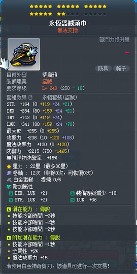 【永恆盜賊頭巾】22星-7cd永恆盜賊頭巾 22星-7cd6%全屬永恆盜賊頭巾 全b捲~