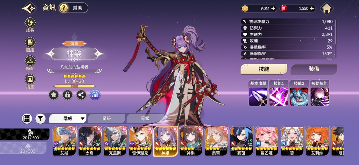 【41等】神樂1突 艾斯1圖 賽茵1突雙超越 太烏 克里斯 碧 等多傳說角討伐角色培養中
