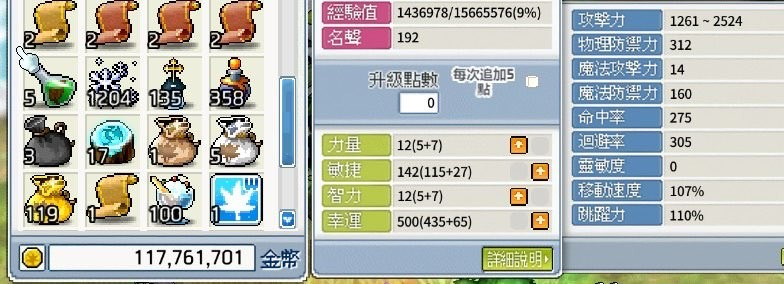 包包280格、雪12XX 、楓幣1E↑ 持續增加中