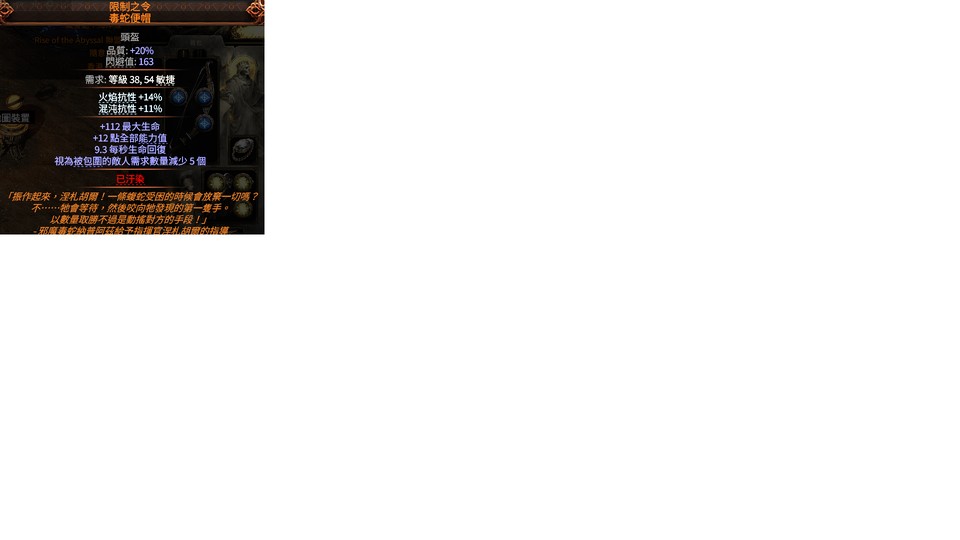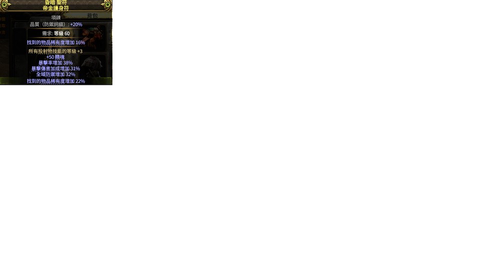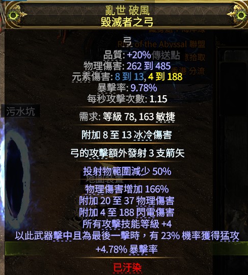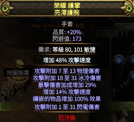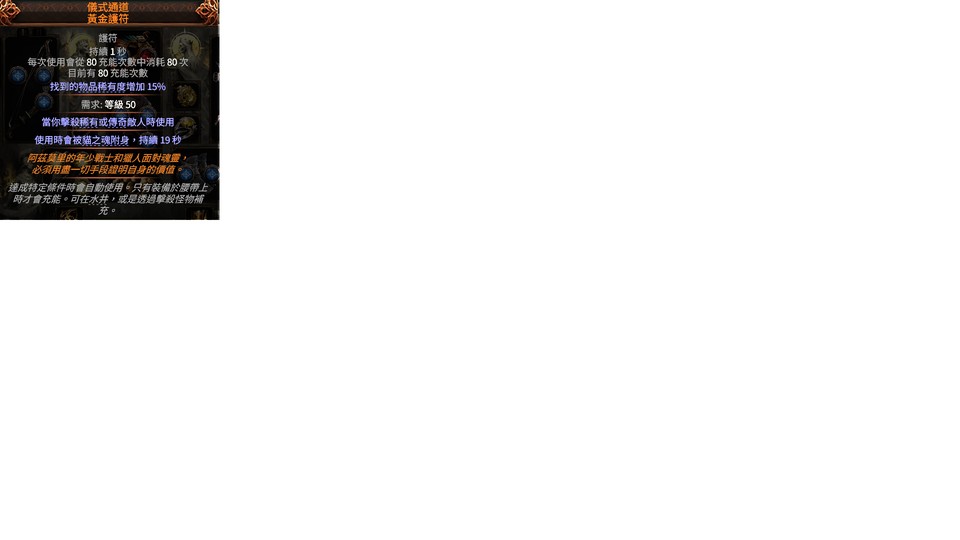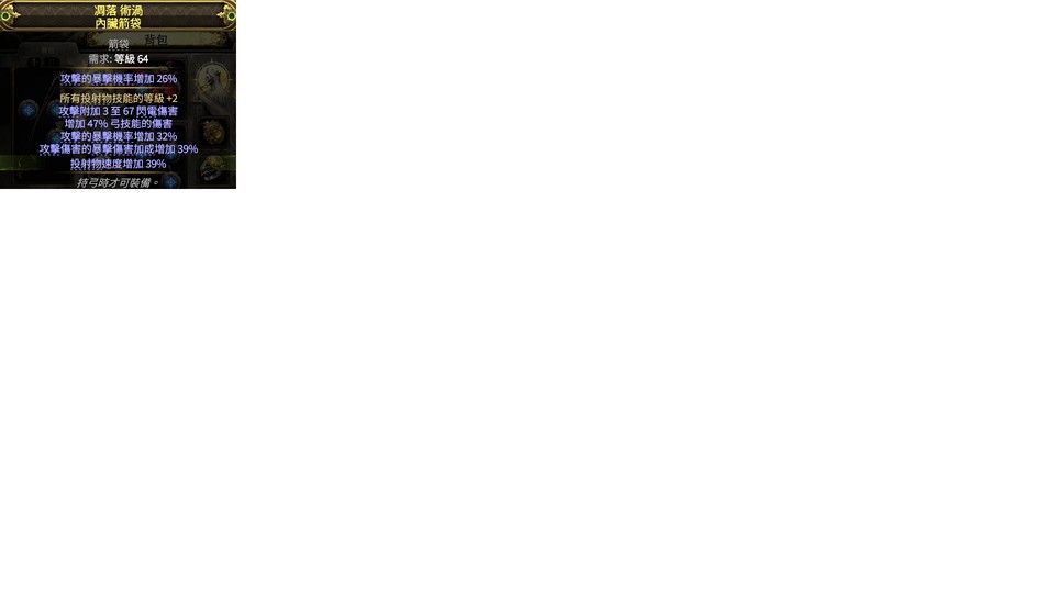 儀式通道貓靈、T1爆三洞弓、頂雙爆項鍊、三洞攻速手、抗性獵首、頂配兩洞包圍頭、55移動速度鞋、額外冰電傷水井之心