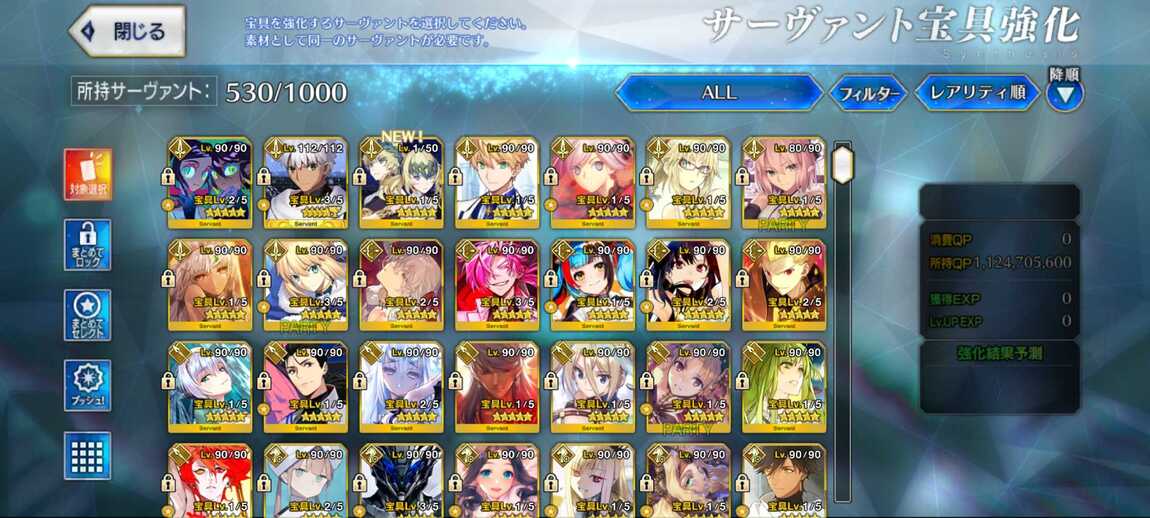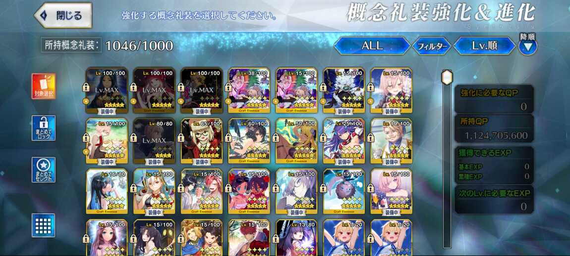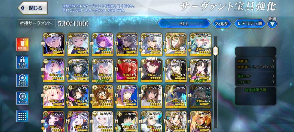 5星角84位,總寶具數127,包括高寶村正、摩根、妖蘭、庫庫、水伊吹等等強角,還有寶2的11週年所長,禮裝有滿破滿等寶石翁和黑杯。