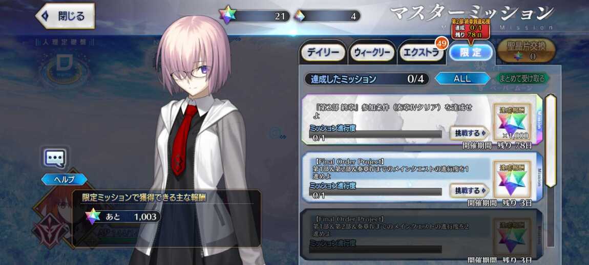 平放日FGO 84/127 5星,滿寶庫庫摩根,奏章IV任務石未拎